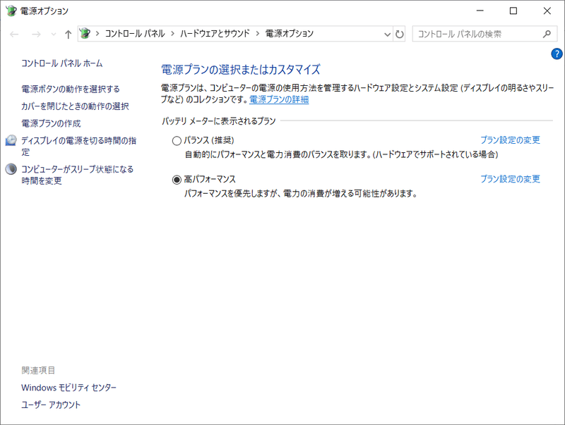 Windows10のノートパソコンを自動で停止しないで高パフォーマンスで動かす